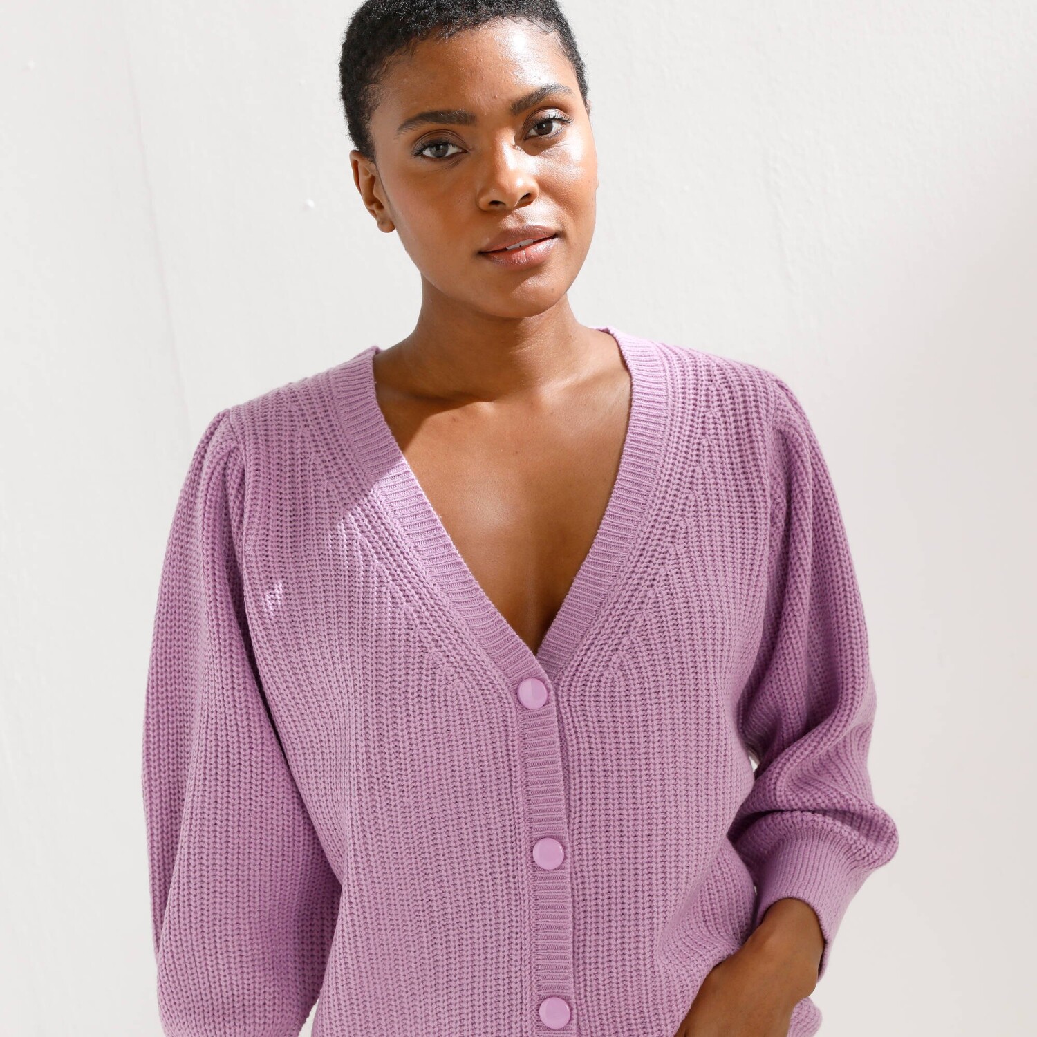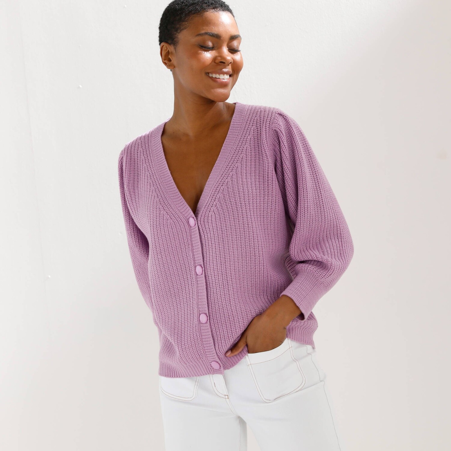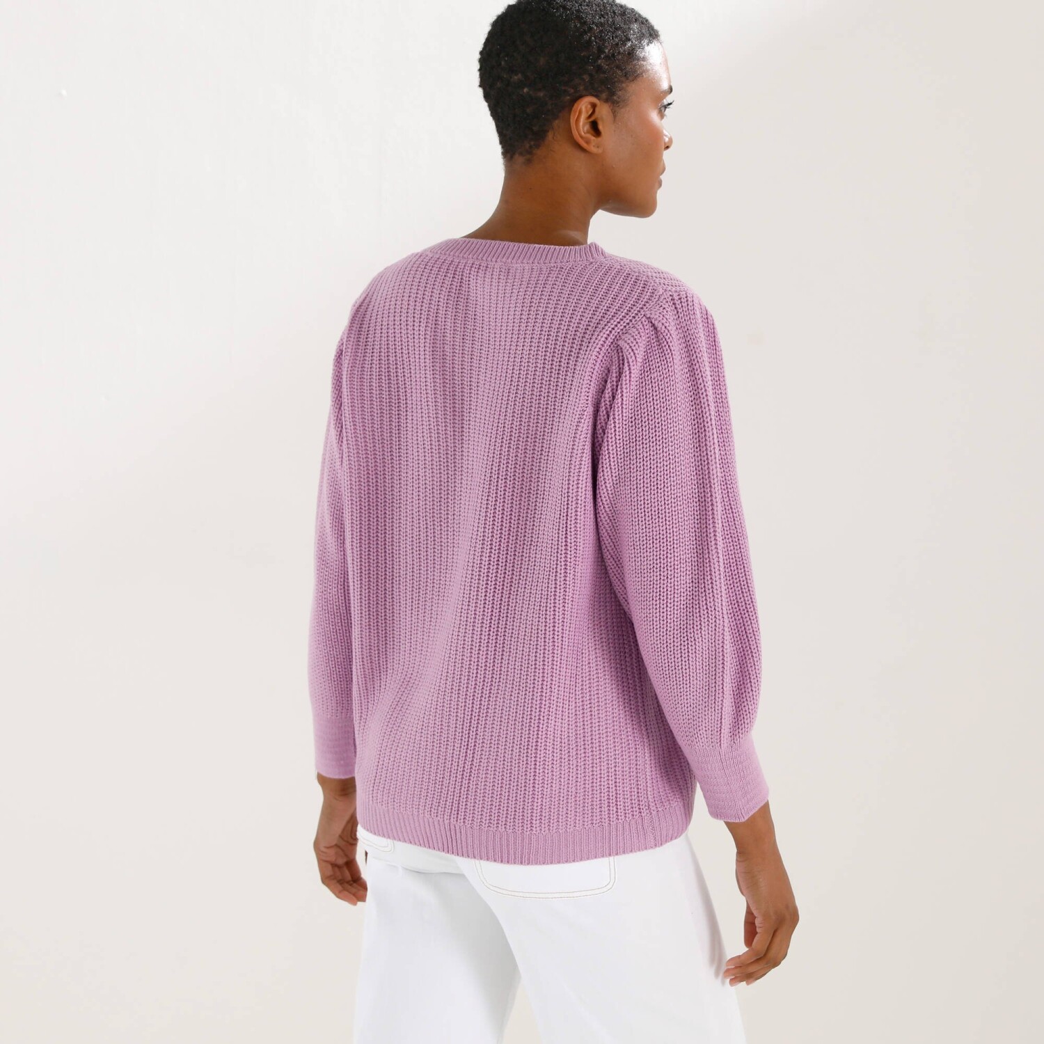 Vrúbkovaný sveter s výstrihom do V
