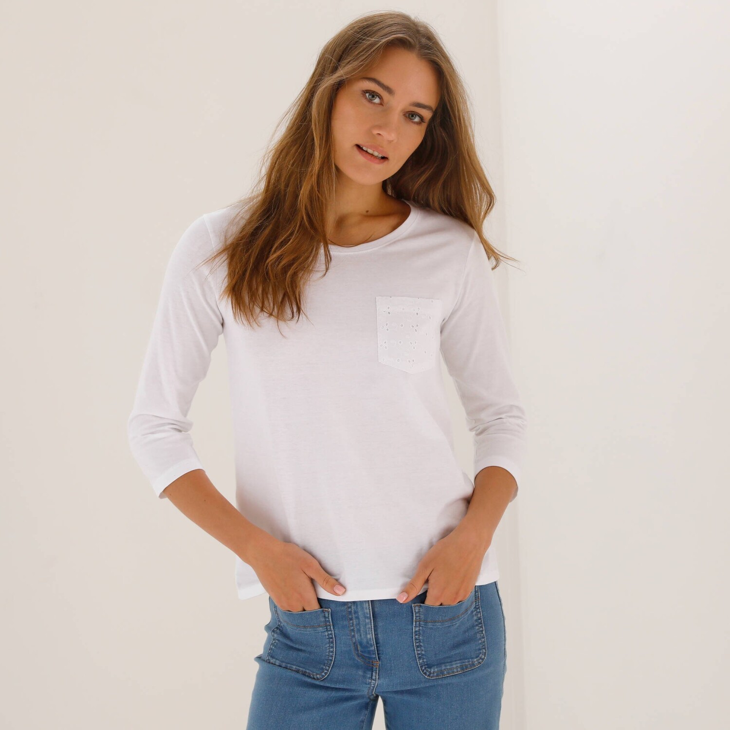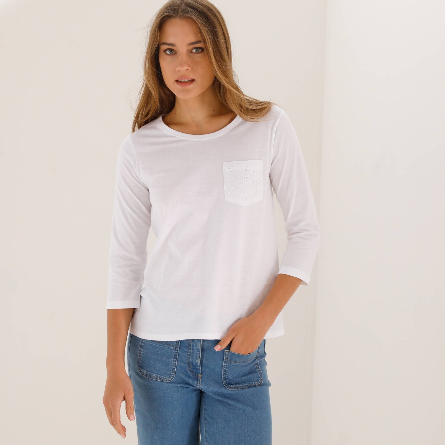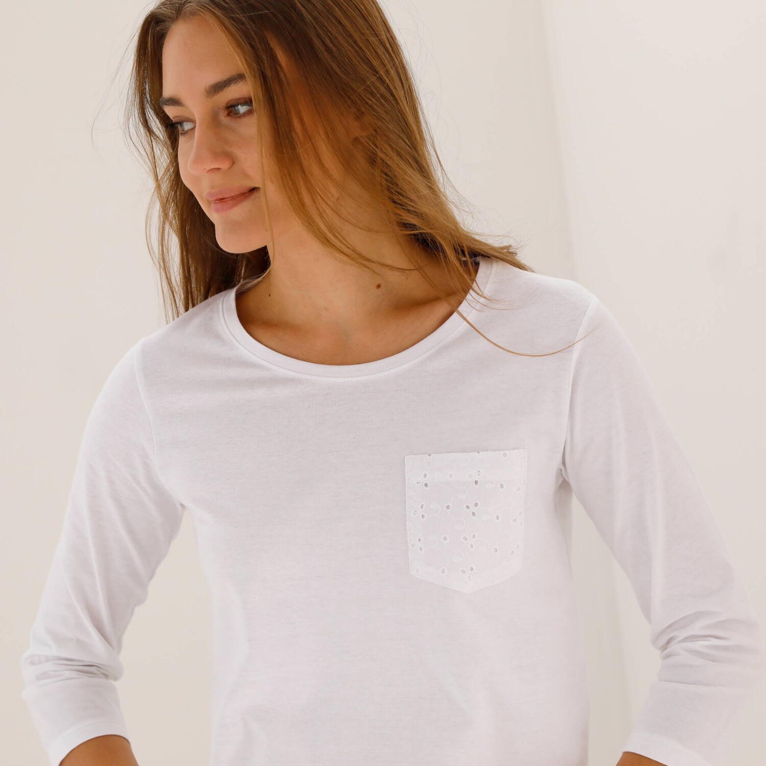 Tričko s okrúhlym výstrihom, dlhými rukávmi a čipkou