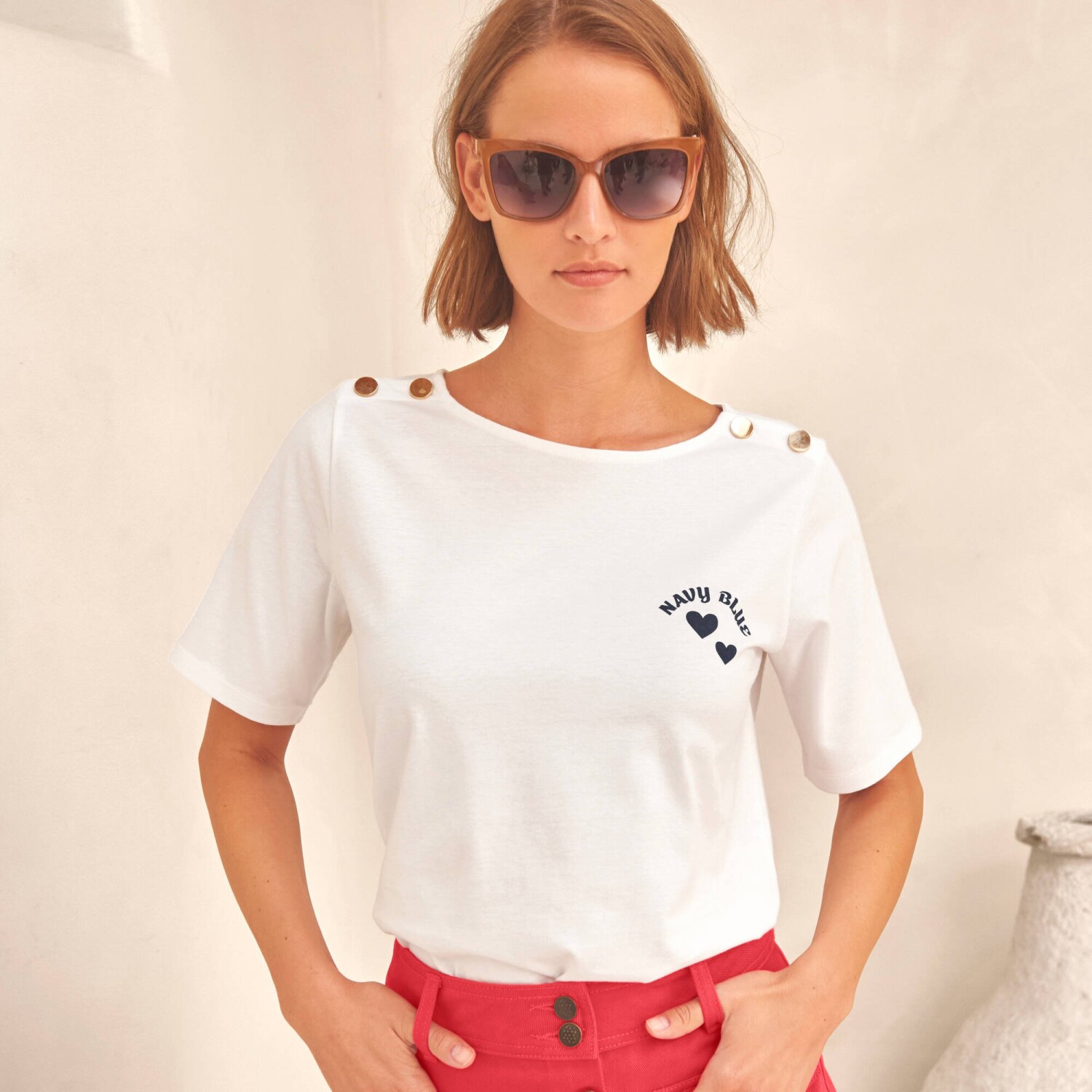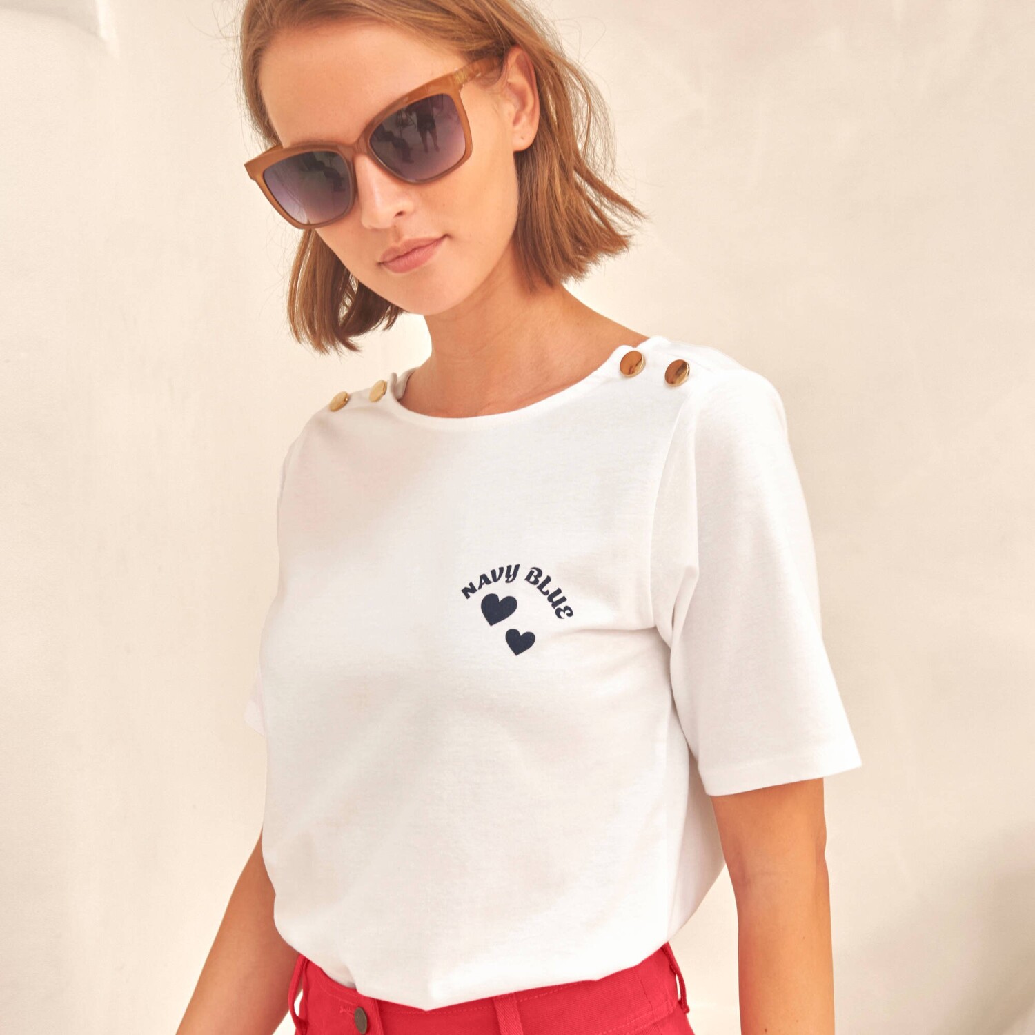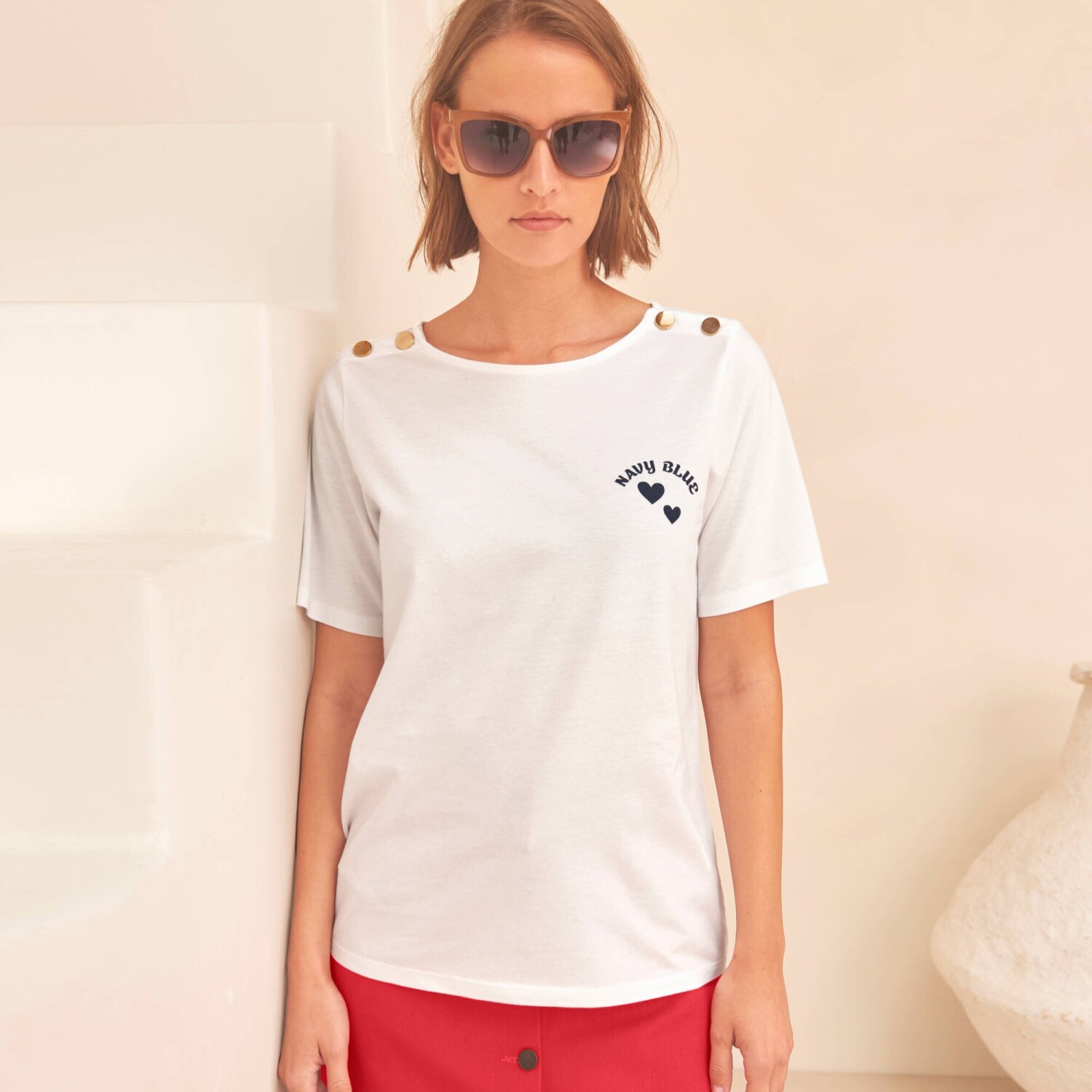 Tričko s potlačou a gombíkovou légou na pleci