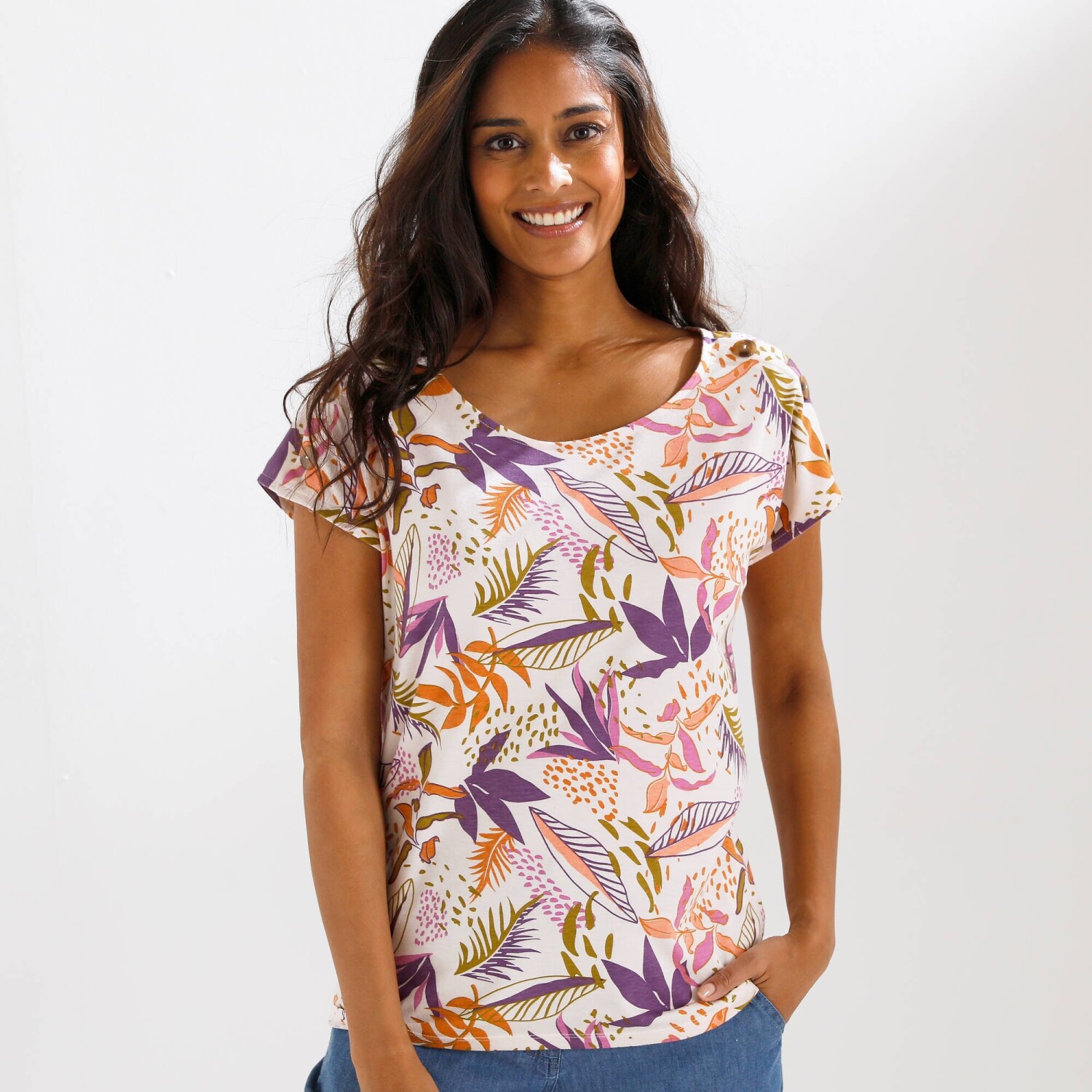 Tričko s okrúhlym výstrihom, krátkymi rukávmi a madeirou