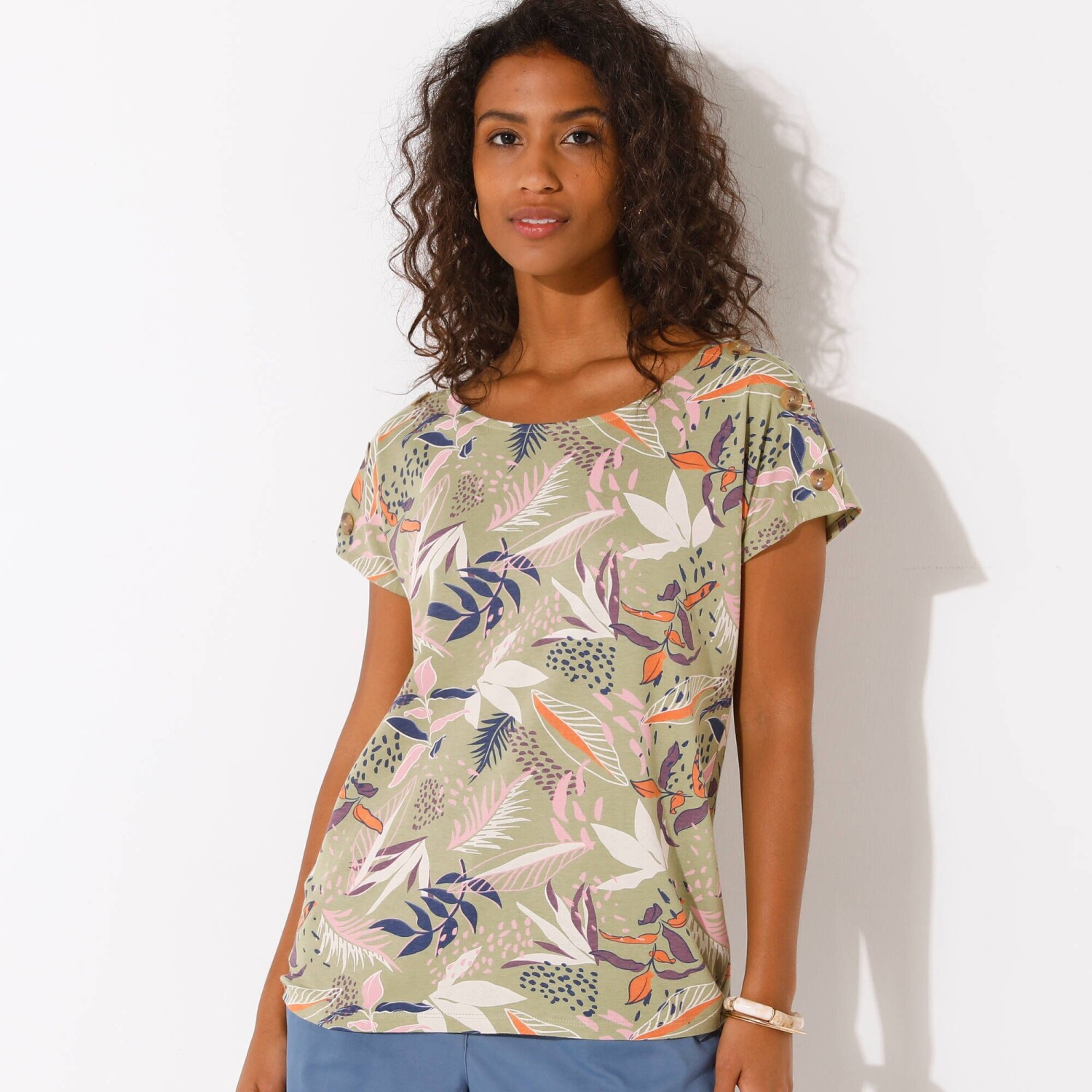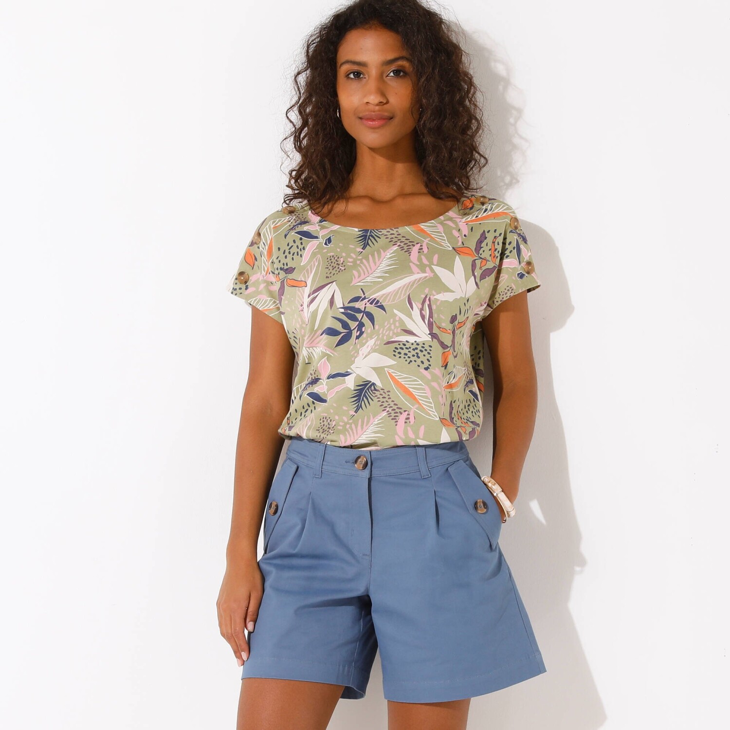 Tričko s okrúhlym výstrihom, krátkymi rukávmi a madeirou