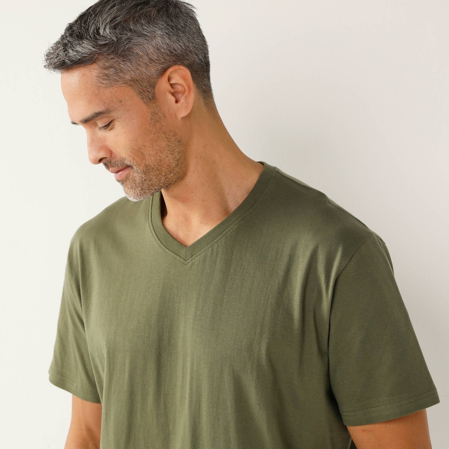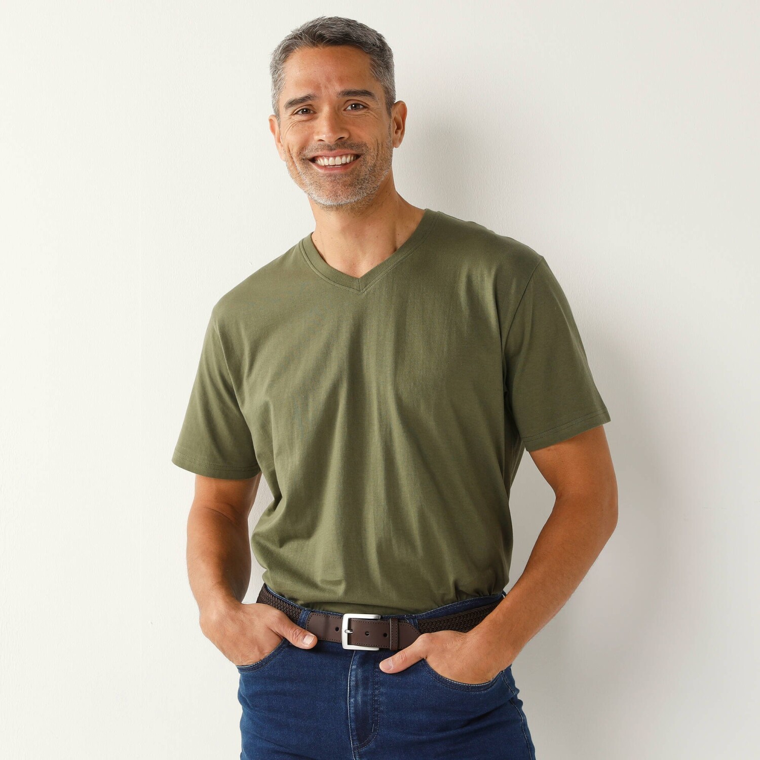 Základným kúskom šatníka je tričko s výstrihom do "V" a krátkymi rukávmi. Výstrih do "V". Krátke rukávy. Rovný spodný lem. Standard 100 by Oeko-Tex (n° CQ 1216/3 IFTH). Táto známka označuje textilné výrobky, ktoré boli podrobené laboratórnym testom na široké spektrum škodlivých látok a výrobok je bezpečný nad rámec platných noriem. Možno prať v práčke.