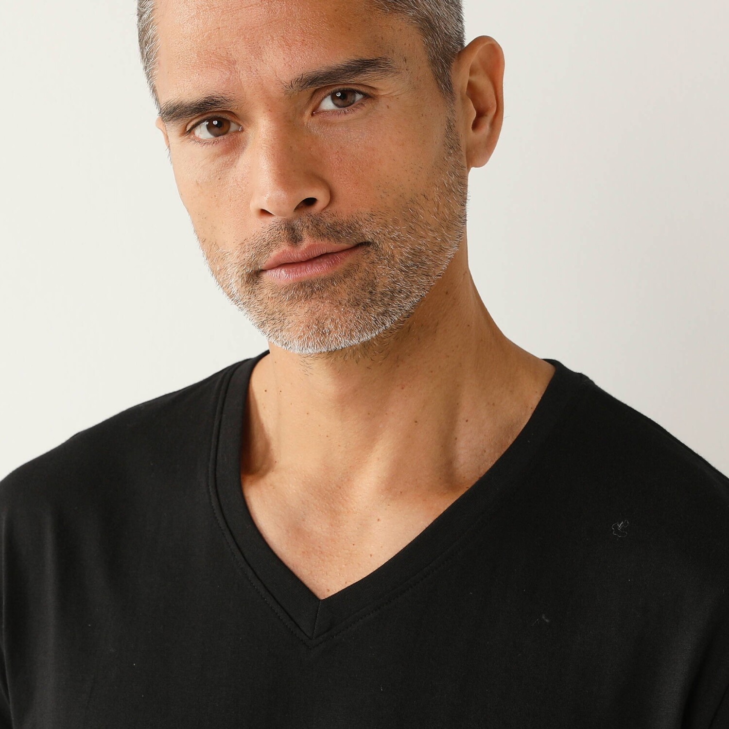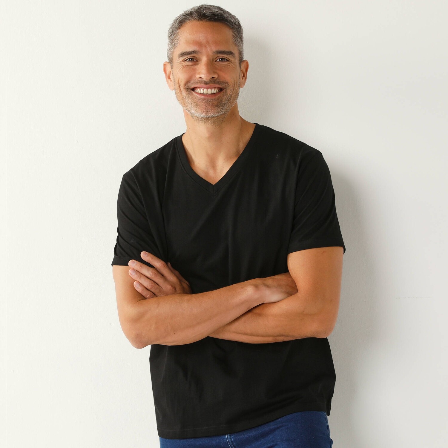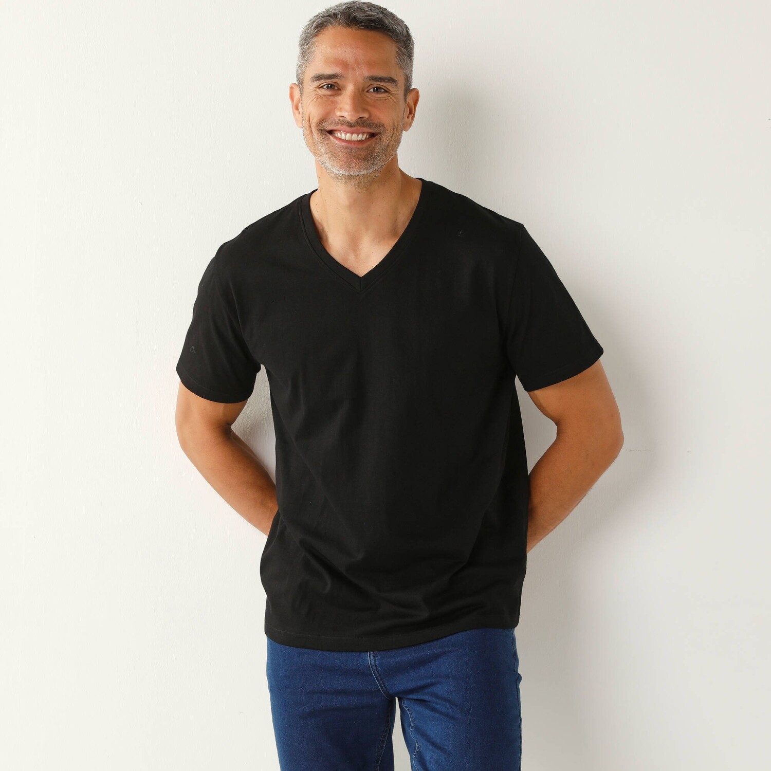 Základný kameň každého pánskeho šatníka! S výstrihom do V. Krátke rukávy. Rovný spodný okraj. Strihané z kvalitného úpletu. Súprava 3 ks v rôznych farbách. Standard 100 by Oeko-Tex (n° CQ 1216/3 IFTH). Táto známka označuje textilné výrobky, ktoré boli podrobené laboratórnym testom na široké spektrum škodlivých látok a výrobok je bezpečný nad rámec platných noriem. Možno prať v práčke.