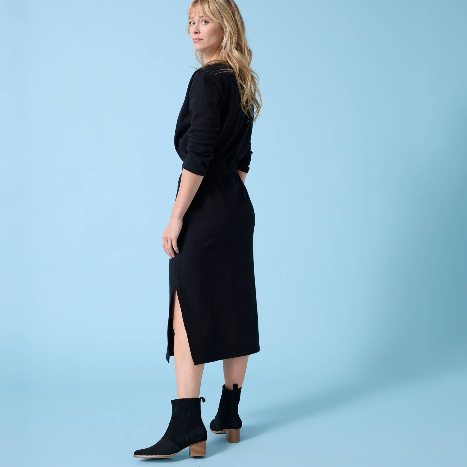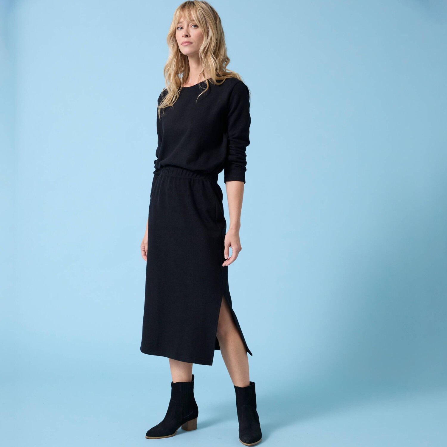 Jednofarebná splývavá midi sukňa na gombíky z eco-friendly viskózy