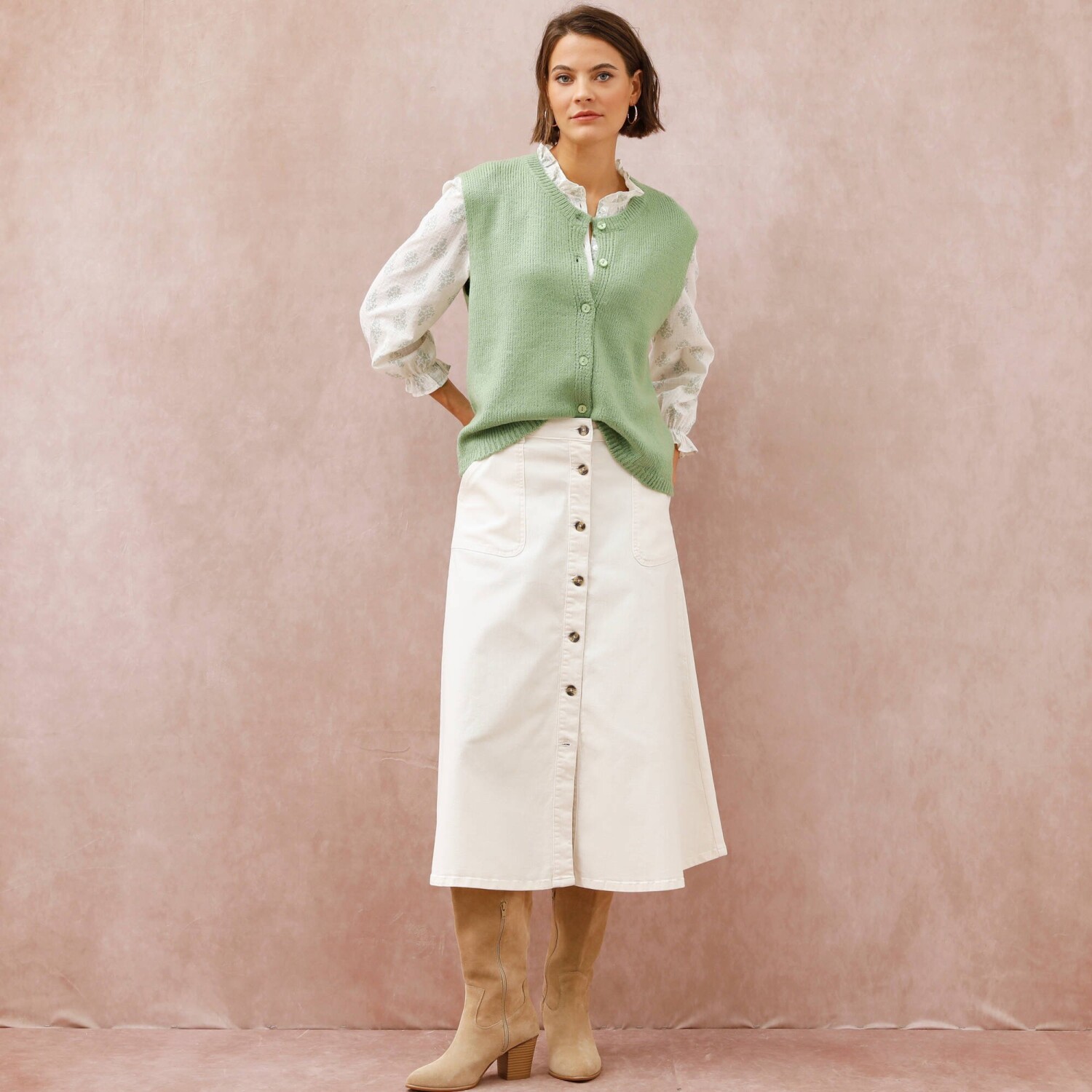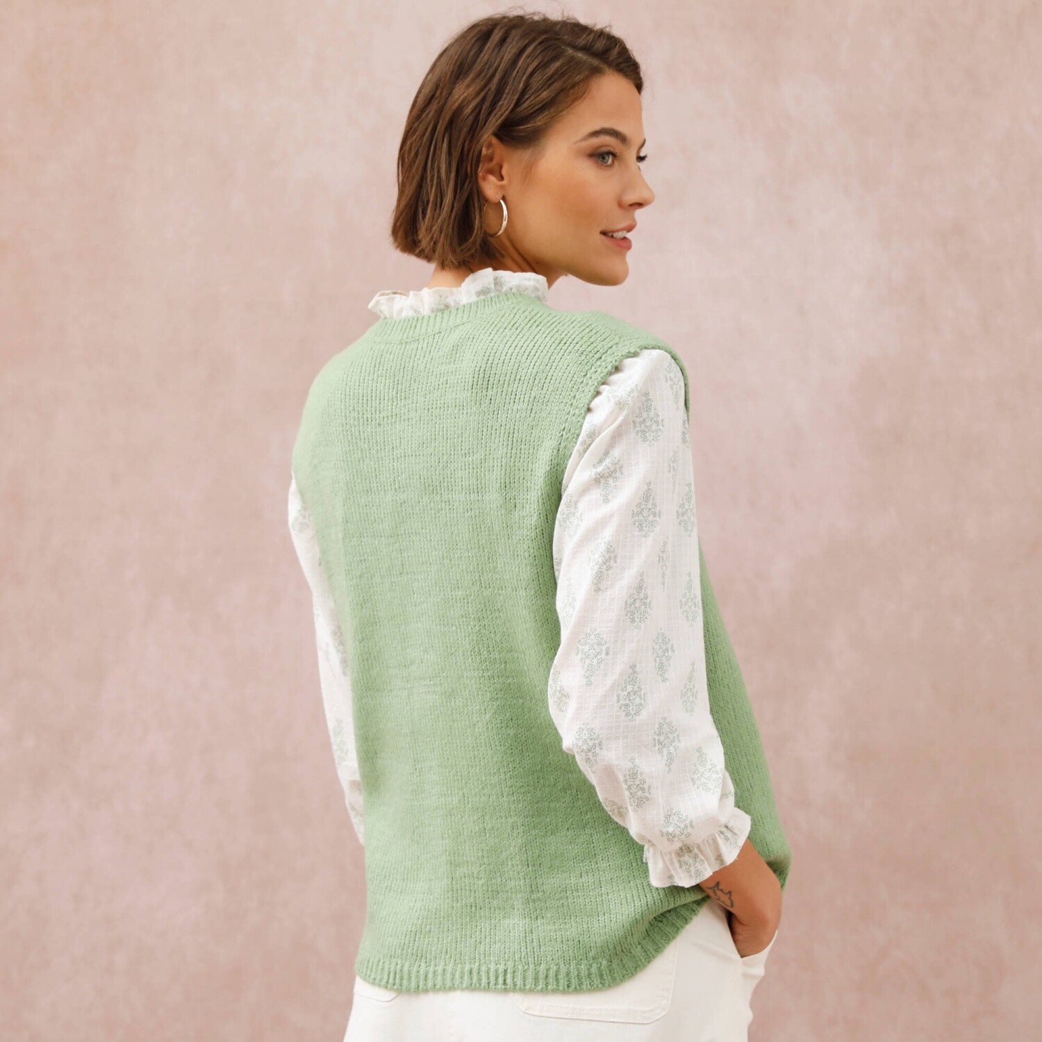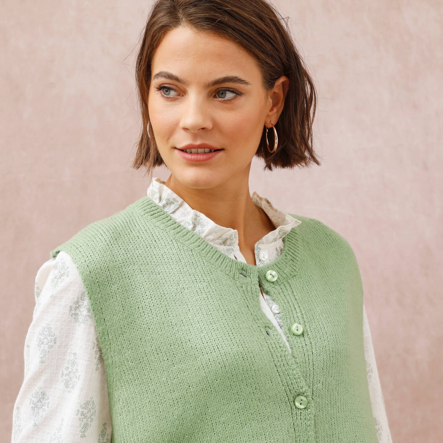 Prihlásenie RegistrovaťElegantná vesta na zapínanie príjemne zahreje a navyše oživí celý outfit. Voľný padnúci strih. Okrúhly vrúbkovaný výstrih. Široké prieramky. Gombíková léga s perleťovým efektom. Rovný, vrúbkovaný dolný lem. Možno prať v práčke.