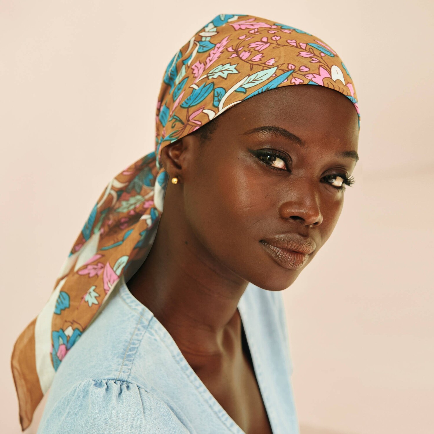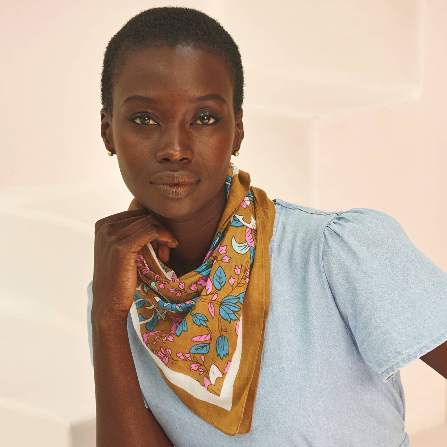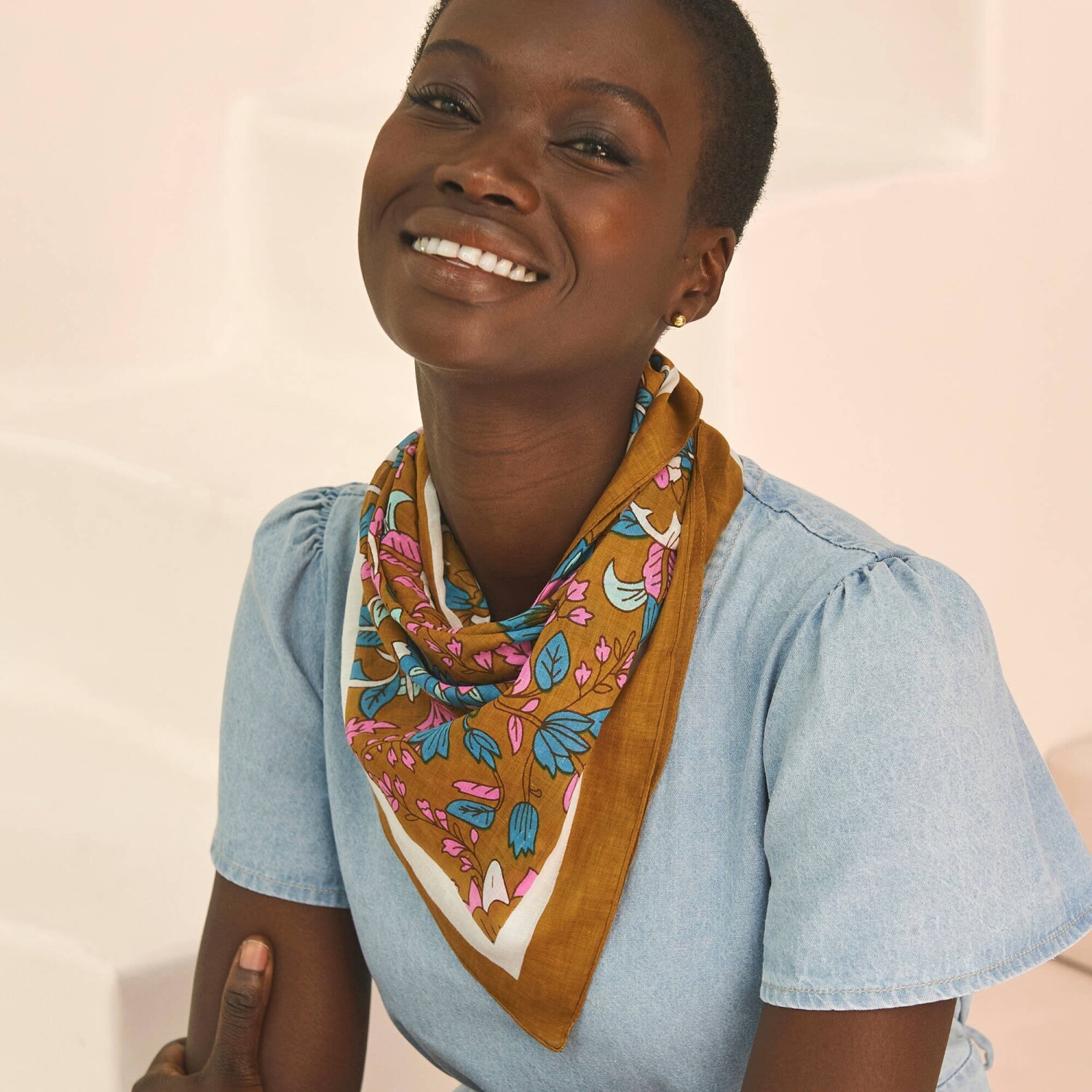 Bavlnená šatka s potlačou kvetín vo folkovom štýle! Jednofarebný lem. Príjemný materiál. Možno prať v práčke.