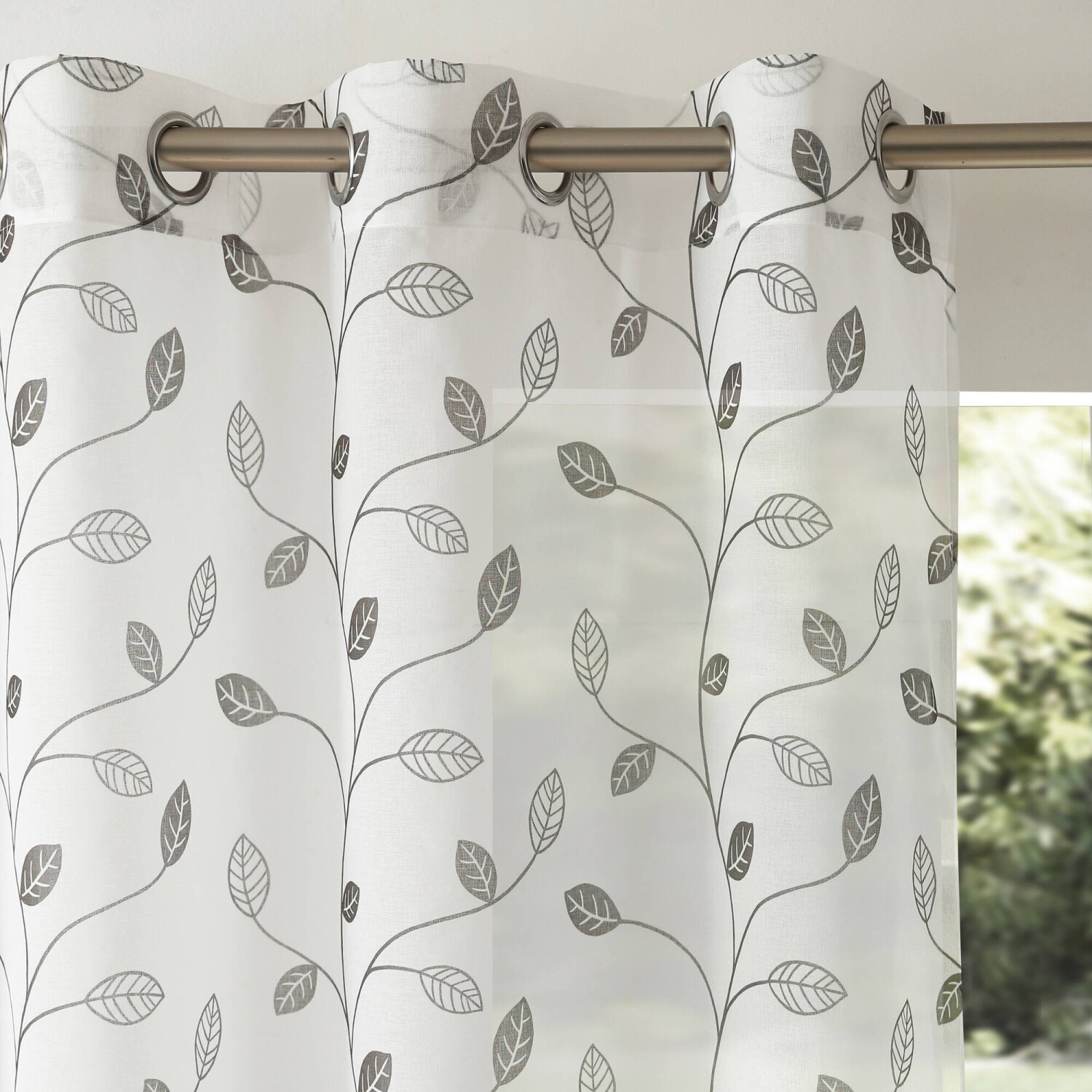 Voálová záclona z originálnej tkaniny zakončená očkami