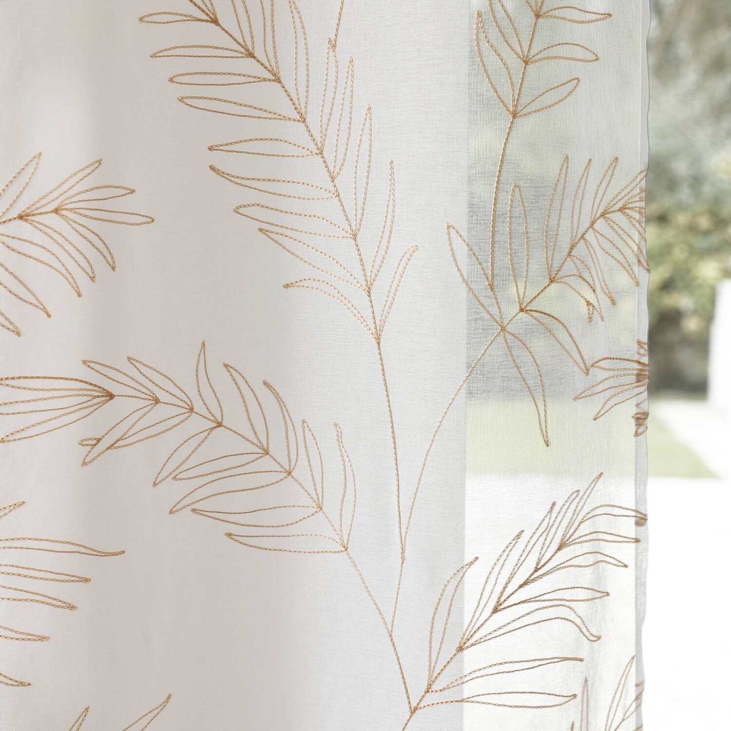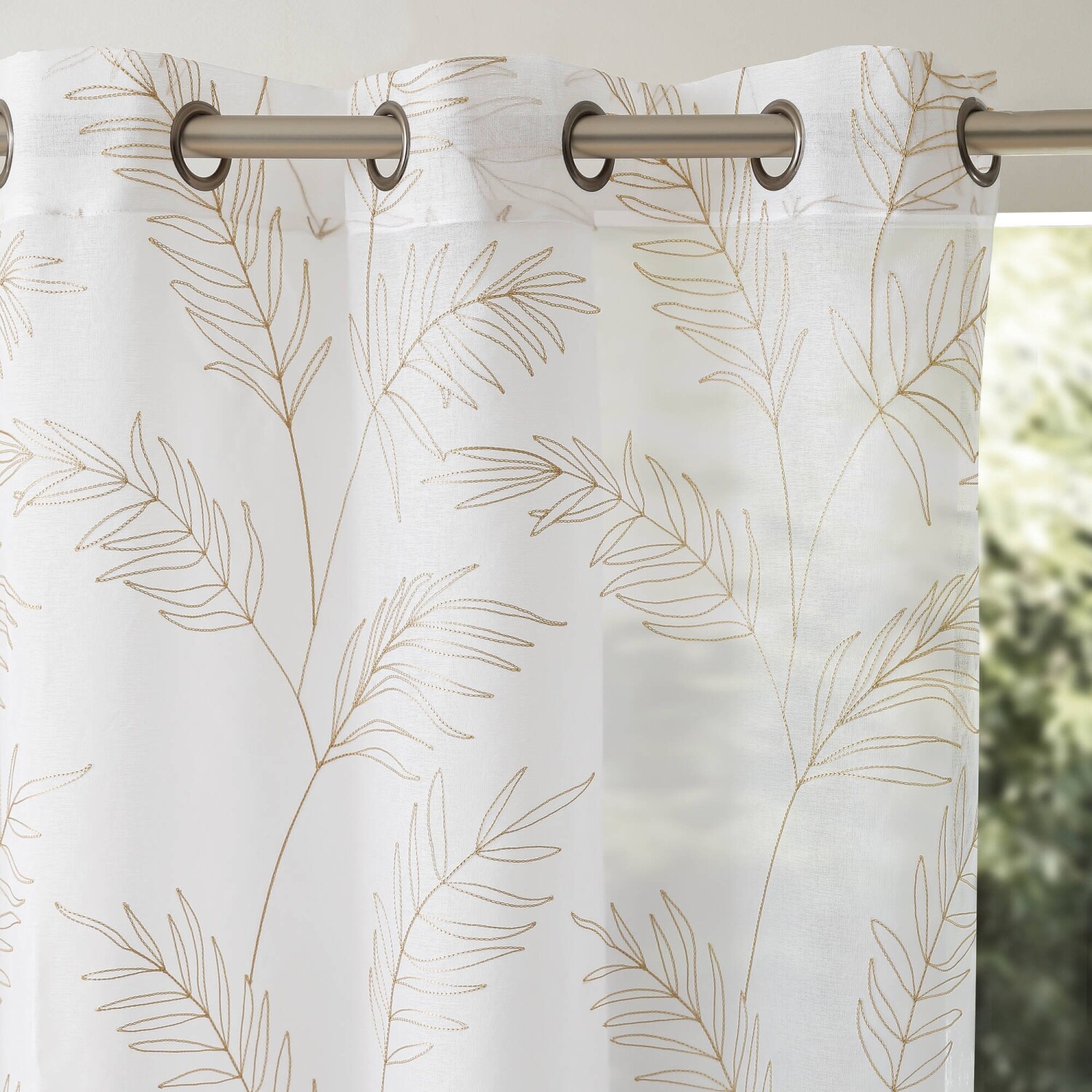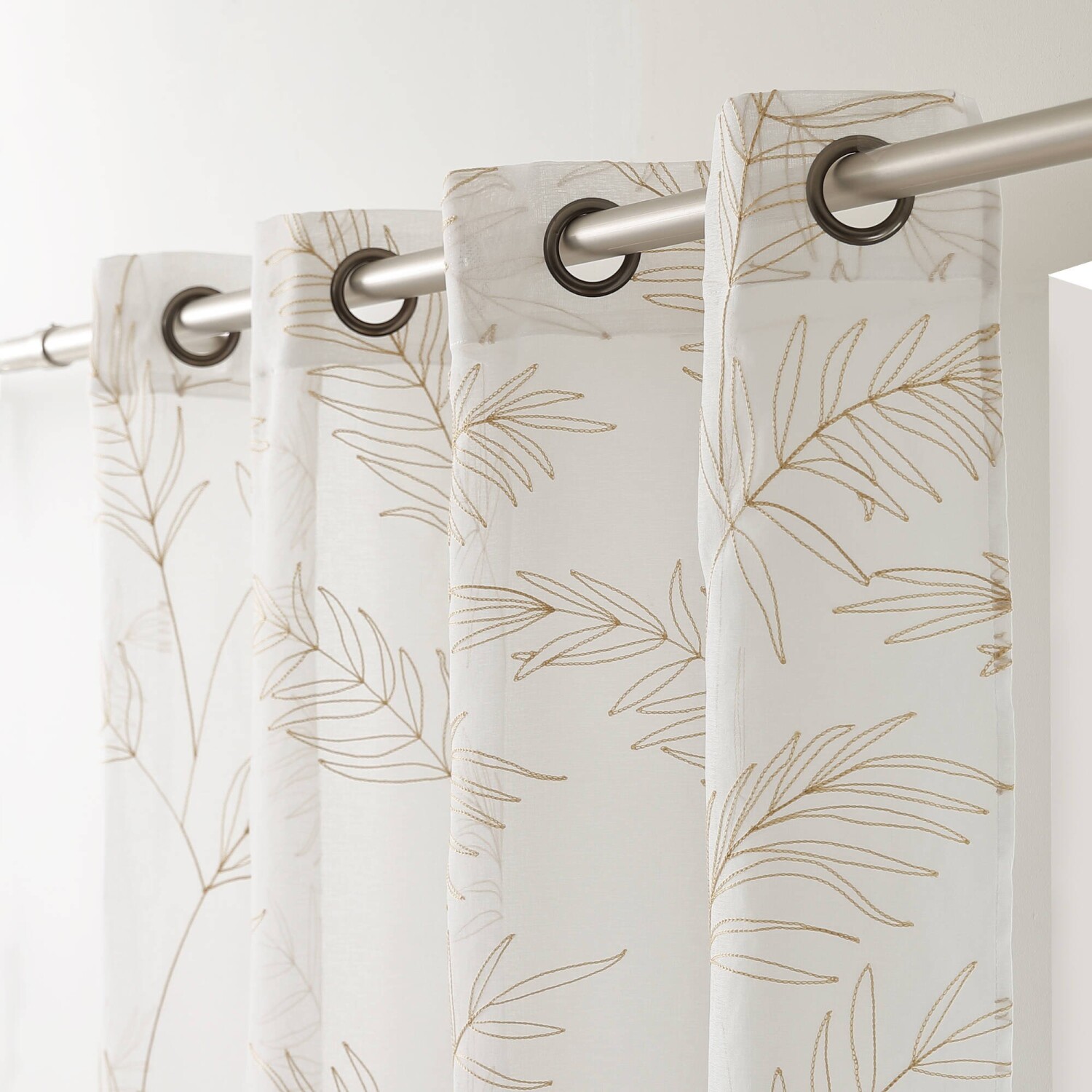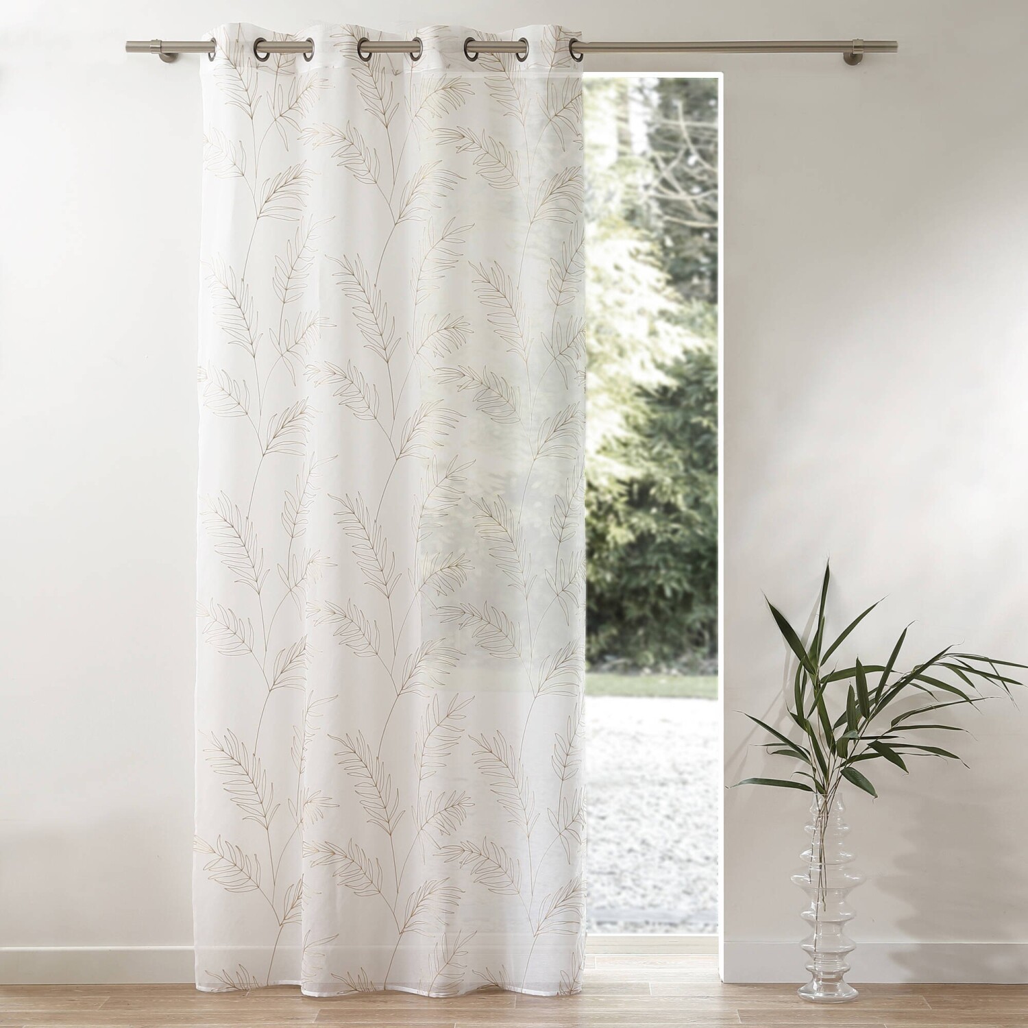 Voálová záclona z originálnej tkaniny zakončená očkami