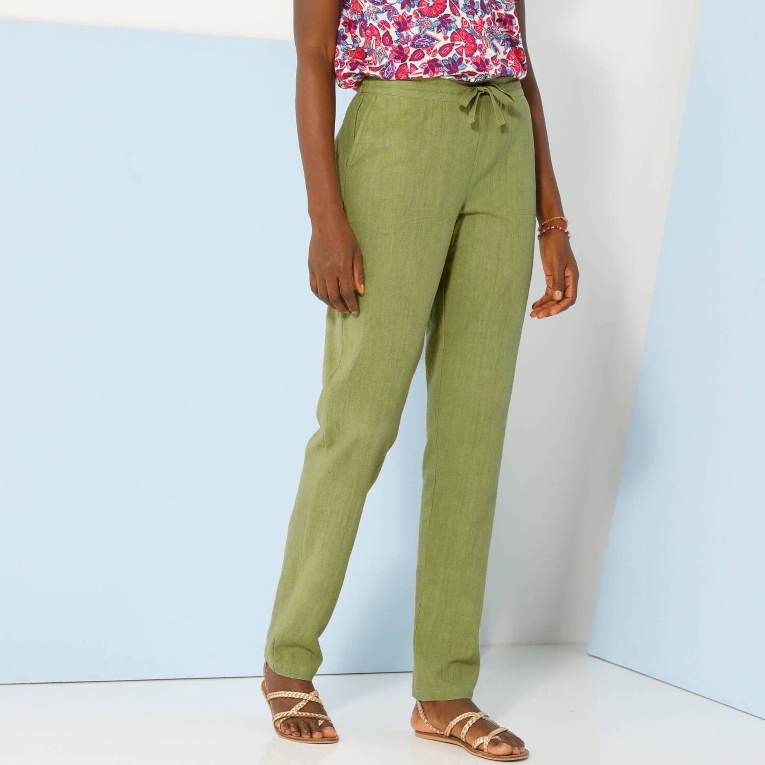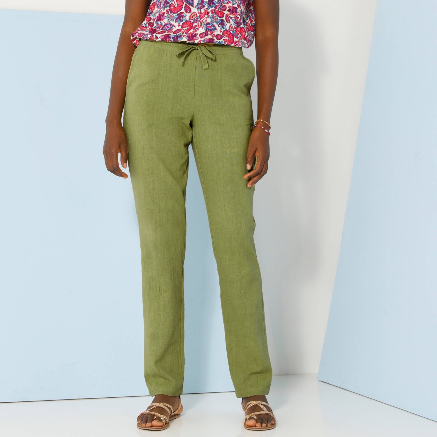 Rovné nohavice s opaskom pre postavu 150 až 155 cm